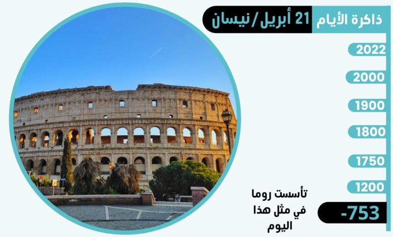 تأسست روما في 21 أبريل 753 قبل الميلاد