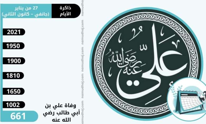 في 27 يناير توفي علي بن أبي طالب رضي الله عنه