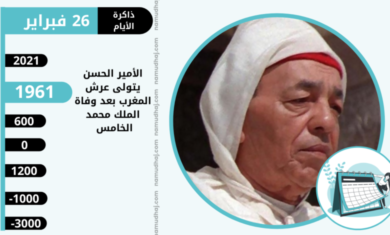 الأمير الحسن يتولى عرش المغرب بعد وفاة الملك محمد الخامس في 26 فيبراير 1961