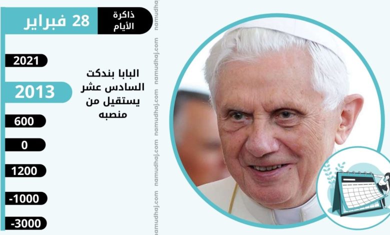 البابا بندكت السادس عشر يستقيل من منصبه في 28 فبراير 2013
