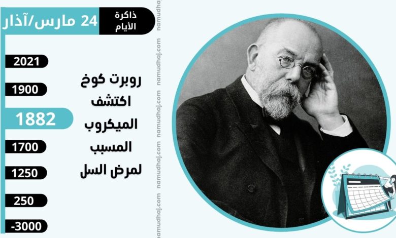 روبرت كوخ اكتشف الميكروب المسبب لمرض السل في 24 مارس 1882