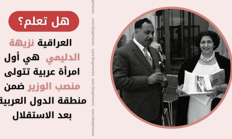 هل تعلم ؟ أنَّ العراقية نزيهة الدليمي هي أول امرأة عربية تتولى منصب الوزير ضمن منطقة الدول العربية بعد الاستقلال.
