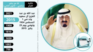 وفاة الملك السعودي عبد الله بن عبد العزيز آل سعود في 23 من يناير (جانفي – كانون الثاني)