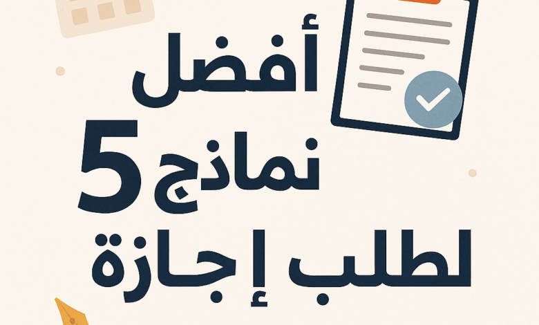 هذه النماذج الخمسة تغطي أبرز الحالات التي قد يحتاج فيها الموظف إلى طلب إجازة. يمكن تعديل التفاصيل بسهولة لتتناسب مع كل حالة. احفظ هذا المقال للرجوع إليه عند الحاجة، ولا تتردد في زيارة موقع “نموذج” للمزيد من الصيغ الجاهزة والاحترافية.