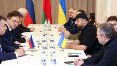 28 فبراير 2022بدء محادثات وقف إطلاق النار بين مسؤولين روس وأوكرانيين
